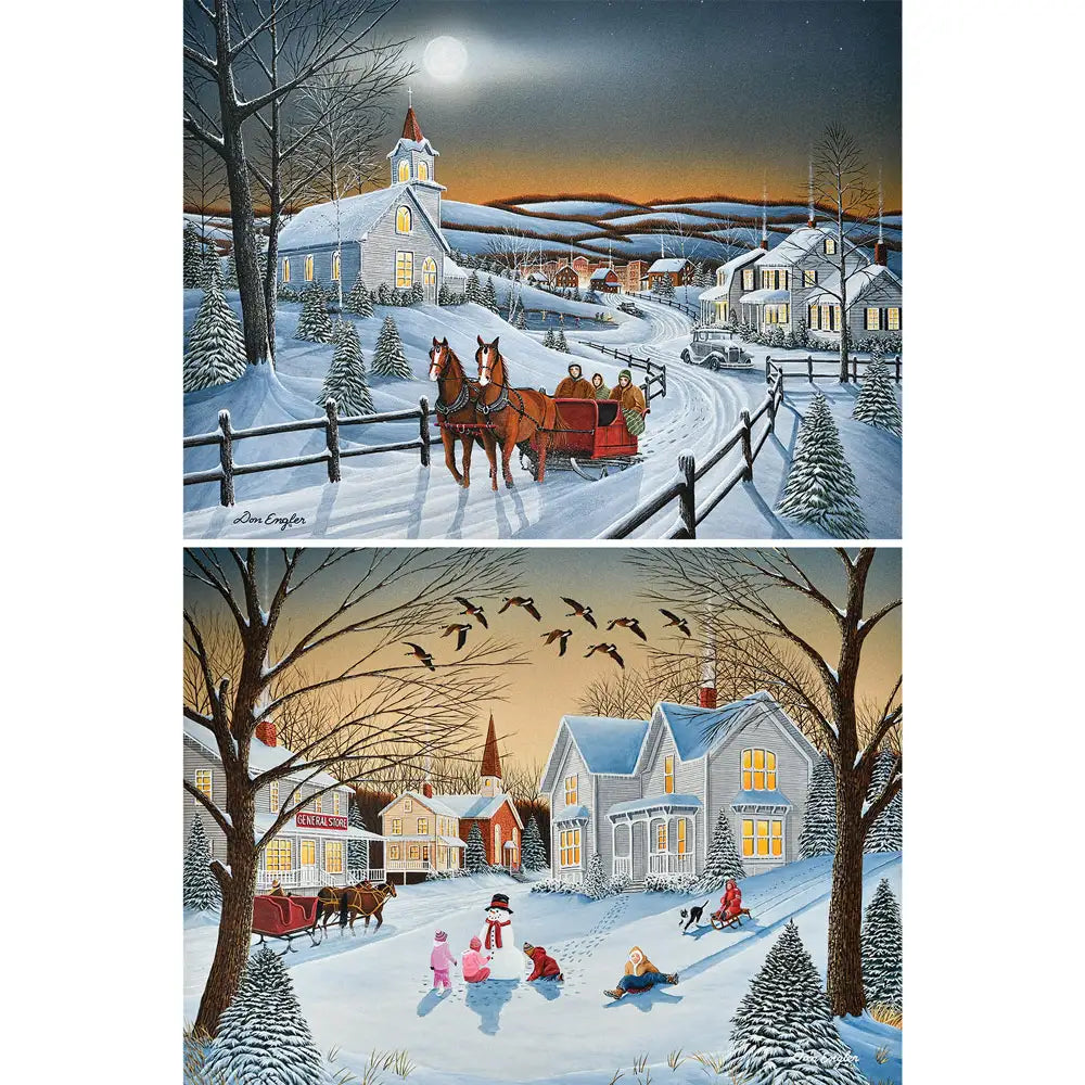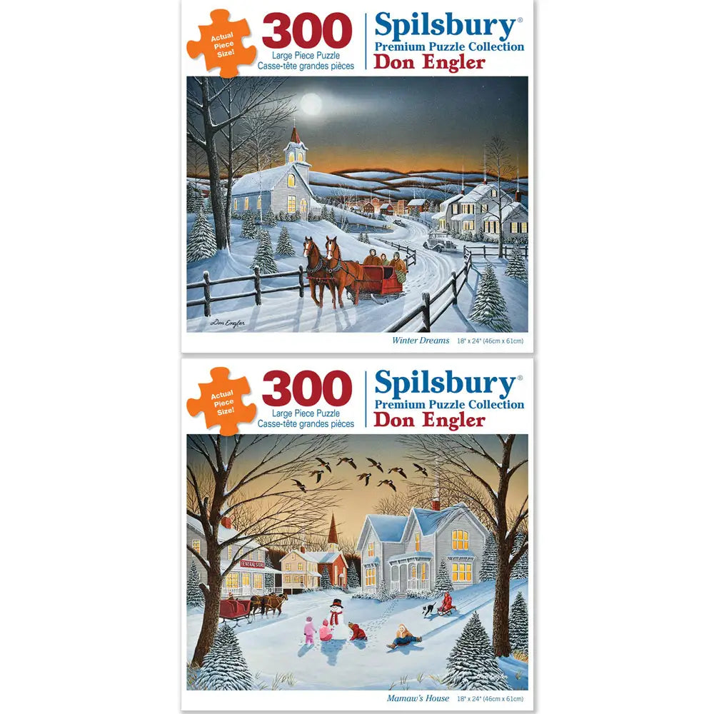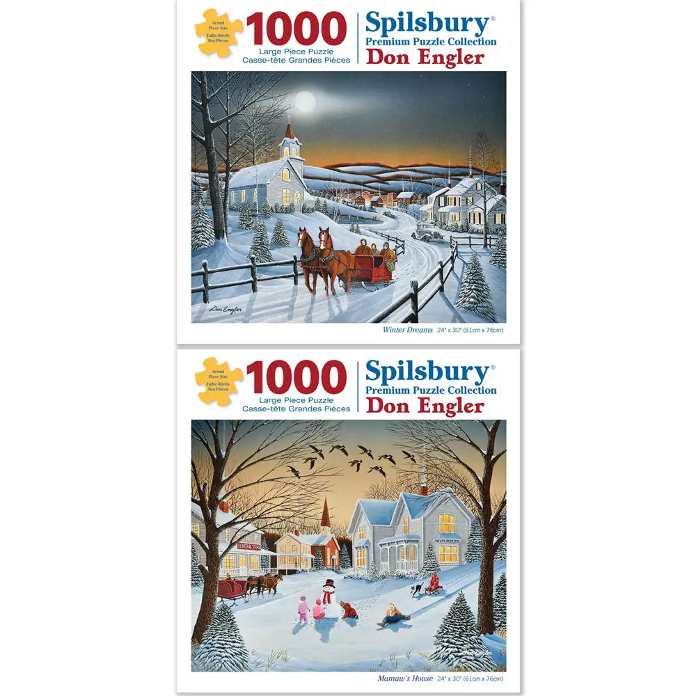 This set contains following puzzles:-- Winter Dreams Jigsaw Puzzle- Mamaw's House Jigsaw PuzzleThis set is designed by Don Engler and is available in two piece count.