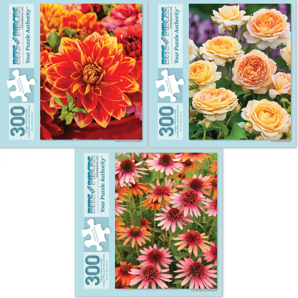 Celebrate the beauty of blooming gardens with this stunning set of three puzzles, featuring Dutch Carnival Dahlia, Grandiflora Rose, and Coral Reef Echinacea. Each puzzle highlights a vibrant floral masterpiece, from fiery dahlias to delicate roses and cheerful echinacea blossoms. Perfect for flower lovers and puzzlers alike, these puzzles capture nature’s splendor in full bloom. This trio is ideal for anyone who loves gardens, flowers, and the joy of puzzling!