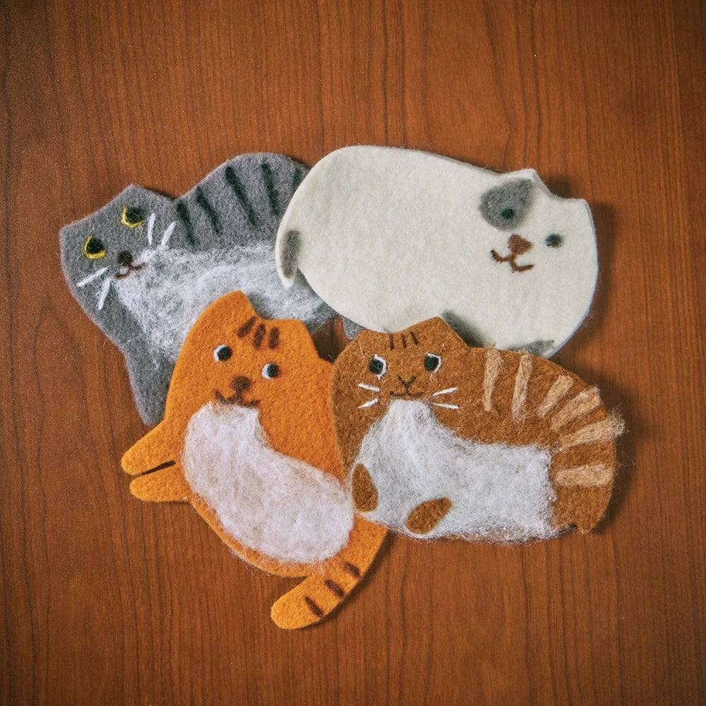 Add a cozy dose of cattitude to your table with our set of four delightfully quirky felt cat coasters. Each one is hand-felted from a wool/poly blend and measures approximately 5" x 4". With their playful poses, soft texture, and expressive little faces, they’re almost too cute to cover with your cup.