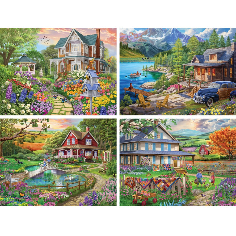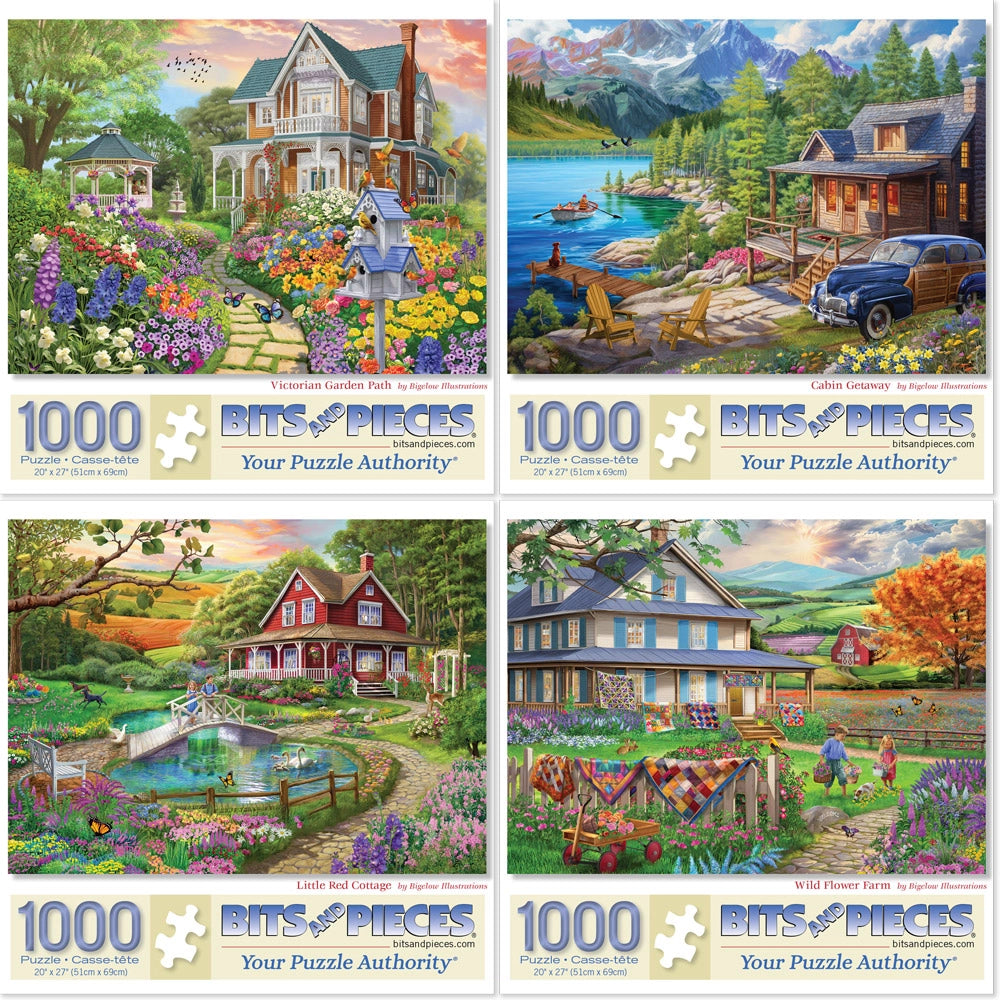 This Value Set is designed by Bigelow Illustrations and includes:- Victorian Garden Path Jigsaw Puzzle- Cabin Getaway Jigsaw Puzzle- Wild Flower Farm Jigsaw Puzzle- Little Red Cottage Jigsaw Puzzle