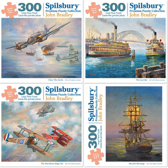 John Bradley is beloved for his realistic yet romanticized portrayals of military life throughout Western history. His illustrations depict the machinery, uniform, and patriotism of American and British fighting forces in vivid, fast-moving scenes. Save on four of our favorite fascinating puzzles, and step into the past with these action-packed settings.