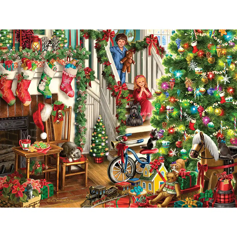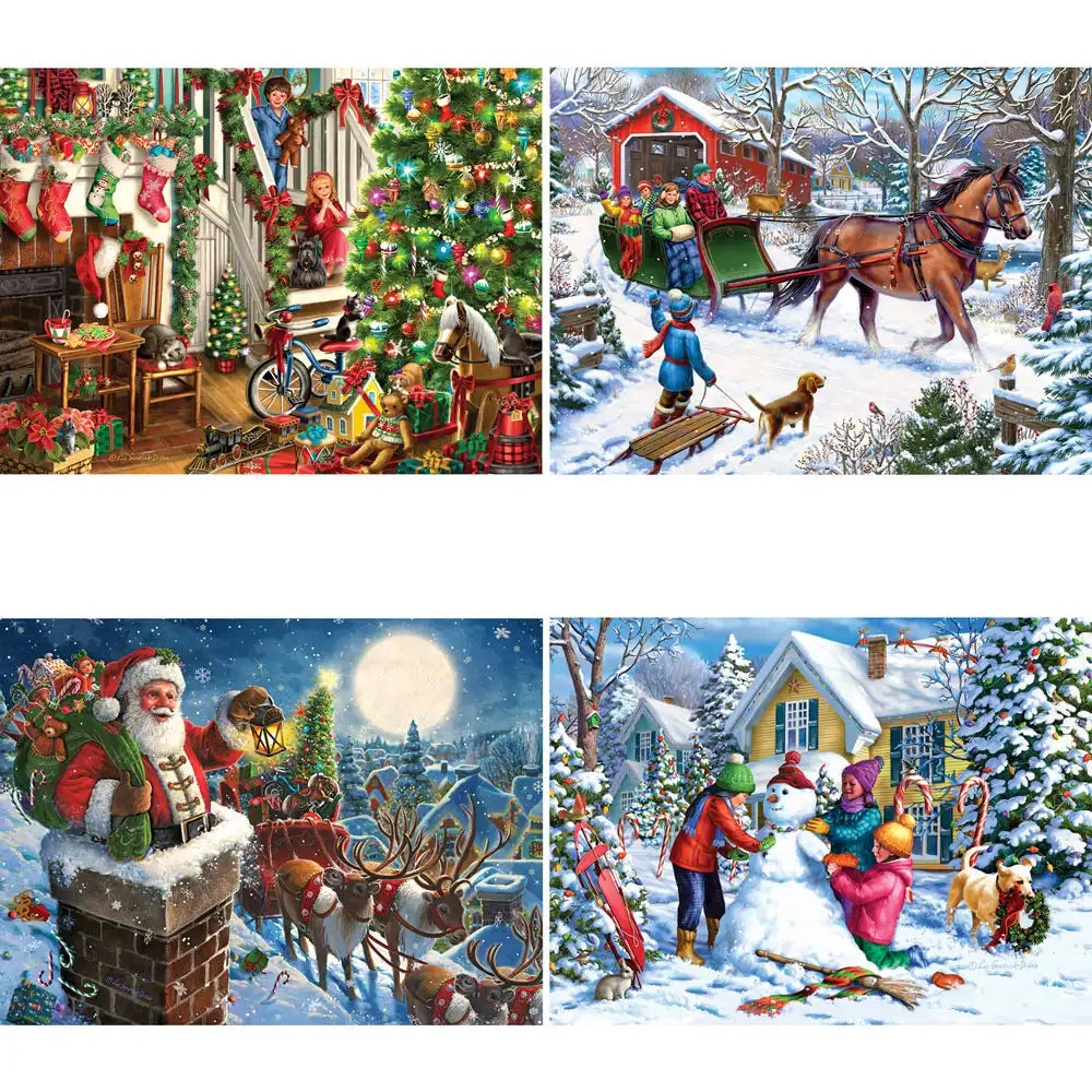 Celebrate the joy and magic of the holiday season with this enchanting set of four puzzles by Liz Goodrick-Dillon. Each scene captures the warmth and wonder of wintertime traditions, from the twinkling excitement of Christmas Morning Surprise to the timeless charm of Old Fashioned Sleigh Ride. Watch Santa prepare his deliveries in Santa’s First Stop, and join friends and family in Winter Holiday Fun as they build snowmen and spread holiday cheer. This collection is perfect for bringing the spirit of the season to your puzzle table, with scenes that evoke the nostalgia of a classic Christmas.