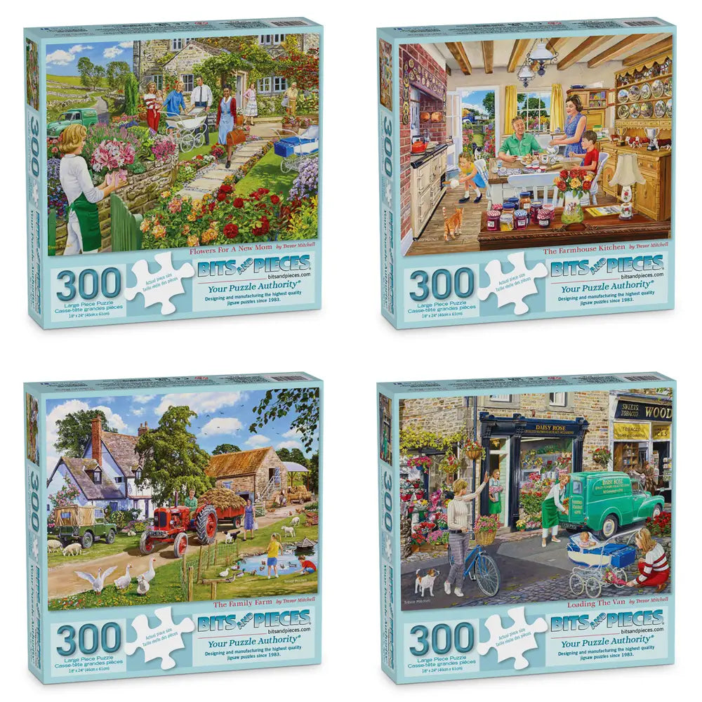 From warm farmhouse kitchens to flower-filled village streets, Village Life is a heartwarming four-puzzle collection by beloved artist Trevor Mitchell. Each scene captures the simple joys of community, family, and country living—full of rich detail, color, and nostalgic charm. Whether you’re loading up the flower van, feeding the ducks, or sitting down to tea, these puzzles invite you to slow down and savor life’s sweetest moments.