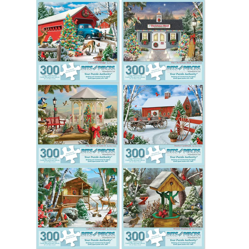 Celebrate the serenity of the season with Alan Giana's Winter Wonder Puzzle Set, a collection of six beautifully illustrated scenes full of quiet charm and holiday spirit. From cardinals perched on snowy branches to warmly lit cabins and decorated bridges, each puzzle captures a peaceful moment in a picture-perfect winter landscape. Whether you're a nature lover, birdwatcher, or holiday enthusiast, these puzzles offer a relaxing escape into the heart of the season.