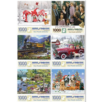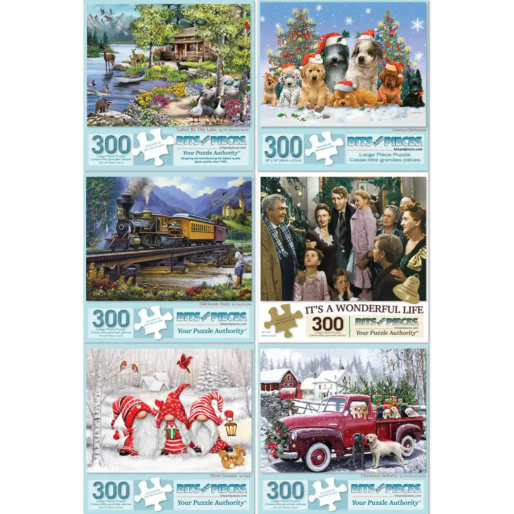 Celebrate the joy of the season with this delightful set of six puzzles, offering a variety of charming scenes for everyone to enjoy. From the cozy, rustic feel of Cabin By The Lake by The Macneil Studio to the festive cheer of Canine Christmas by Bob Giordano, this set captures the spirit of winter and nostalgia. Take a journey back in time with Old Steam Train by Oleg Gavrilov, or savor the classic warmth of It’s A Wonderful Life. Spread some holiday magic with the whimsical Three Gnomes by Makiko, and experience the serene beauty of Christmas Delivery by The Macneil Studio. Perfect for gifting or family puzzling, this set is available in 300, 500, and 1000 pieces, providing an enjoyable challenge for all.