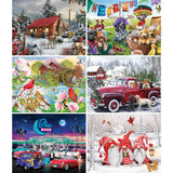 Celebrate the joy of every season with this delightful set of six bestselling puzzles. New Friends by Alan Giana invites you to a cozy cabin blanketed in snow, while Puppies Playing by Adrian Chesterman bursts with vibrant springtime energy. Spring at the Mill Pond by Rosalind Solomon captures a charming winter town scene, and Christmas Delivery by The Macneil Studio radiates holiday cheer with a vintage truck and festive décor. Blue Moon Drive-In by Chris Dobrowolski takes you back to nostalgic nights at a retro diner, while Three Gnomes by Makiko adds a whimsical touch to your collection.