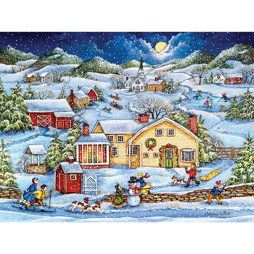 This jigsaw puzzle set of 6 is designed by Bonnie White. Puzzles are renowned for their engaging complexity, offering a satisfying challenge with their smaller, intricate pieces. Dive into the magic of winter with these 6 delightful puzzles. From Santa in the sky to children building snowmen and horse-drawn carriages, these heartwarming scenes capture the holiday spirit and snowy wonderland, featuring playful dogs, horses, and cheerful sledding adventures.