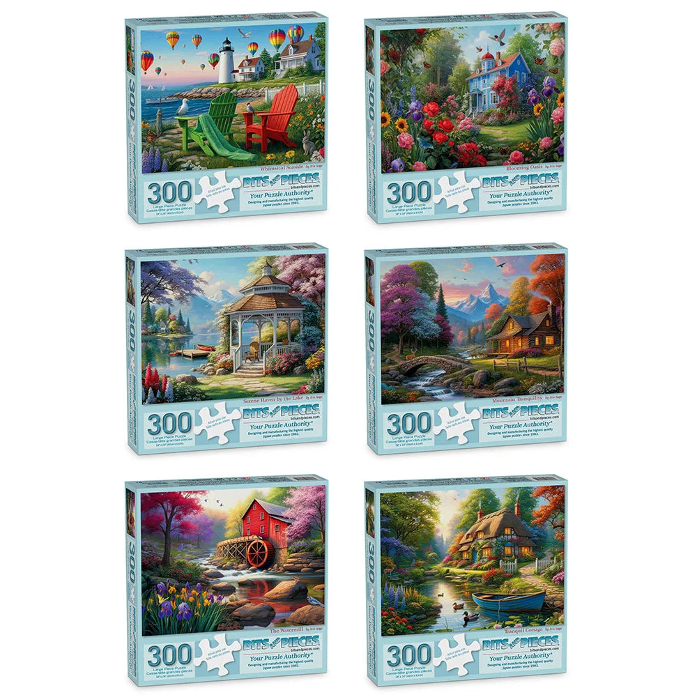 Step into a world of timeless beauty with the Countryside Daydreams puzzle collection. Each scene, lovingly illustrated by Iris Sage, captures the magic of peaceful landscapes, cozy cottages, and vibrant gardens. From a lakeside gazebo to a rustic watermill and a charming thatched-roof cottage, these puzzles invite you to slow down, unwind, and piece together the wonders of nature. Perfect for puzzle lovers who enjoy scenic views, warm colors, and a touch of nostalgia.