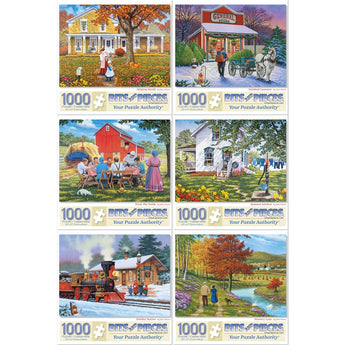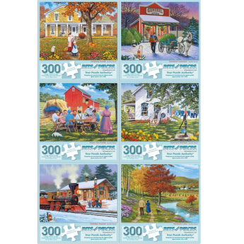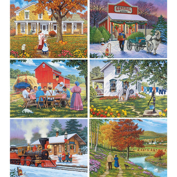 Set of 6: John Sloane Jigsaw Puzzles Nostalgic Small-Town Moments