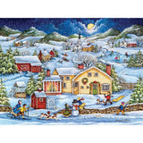 This jigsaw puzzle is designed by Bonnie White. Puzzles are renowned for their engaging complexity, offering a satisfying challenge with their smaller, intricate pieces. On a snowy moonlit eve cross-country skiers race through the pristine landscape, townsfolk build a cheerful snowman, and a little boy sleds alongside his faithful dog. Available in multiple piece counts.