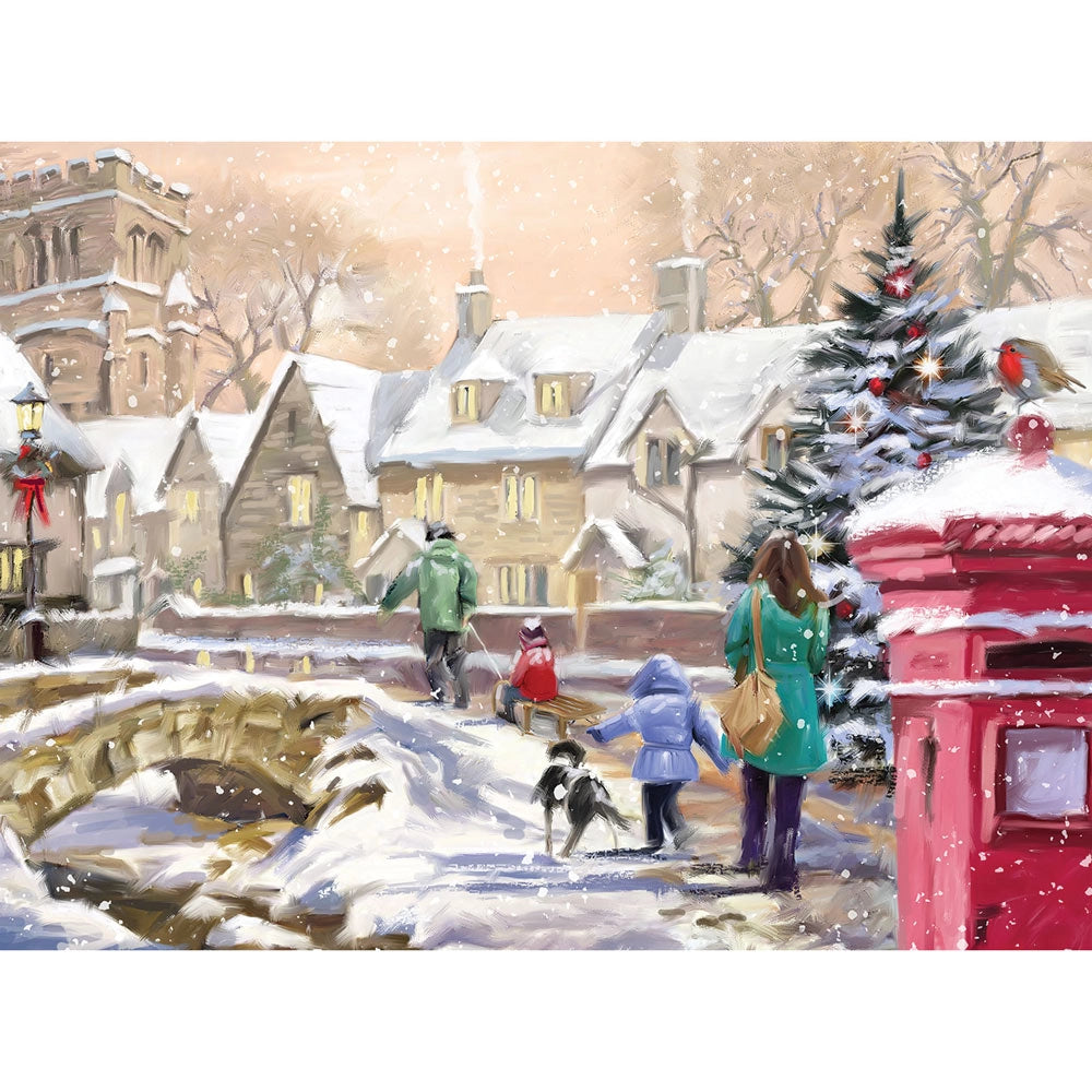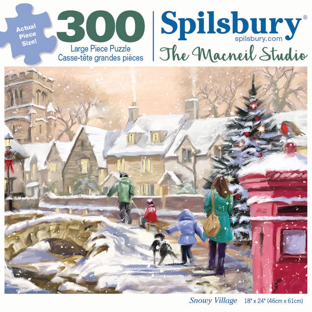 Take a stroll through a winter wonderland with Snowy Village by The Macneil Studio. This charming scene depicts a cozy village covered in fresh snow, with families enjoying the crisp air and holiday cheer. From the warm glow of lanterns to the sparkling snowflakes, every detail invites you to embrace the beauty of the season. Available in both 300 and 1000-piece counts.