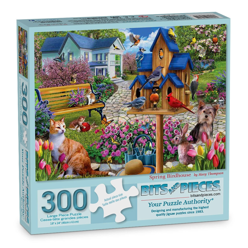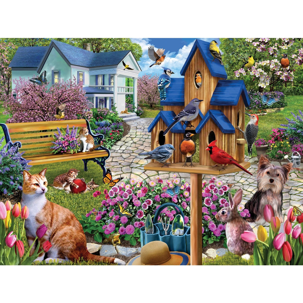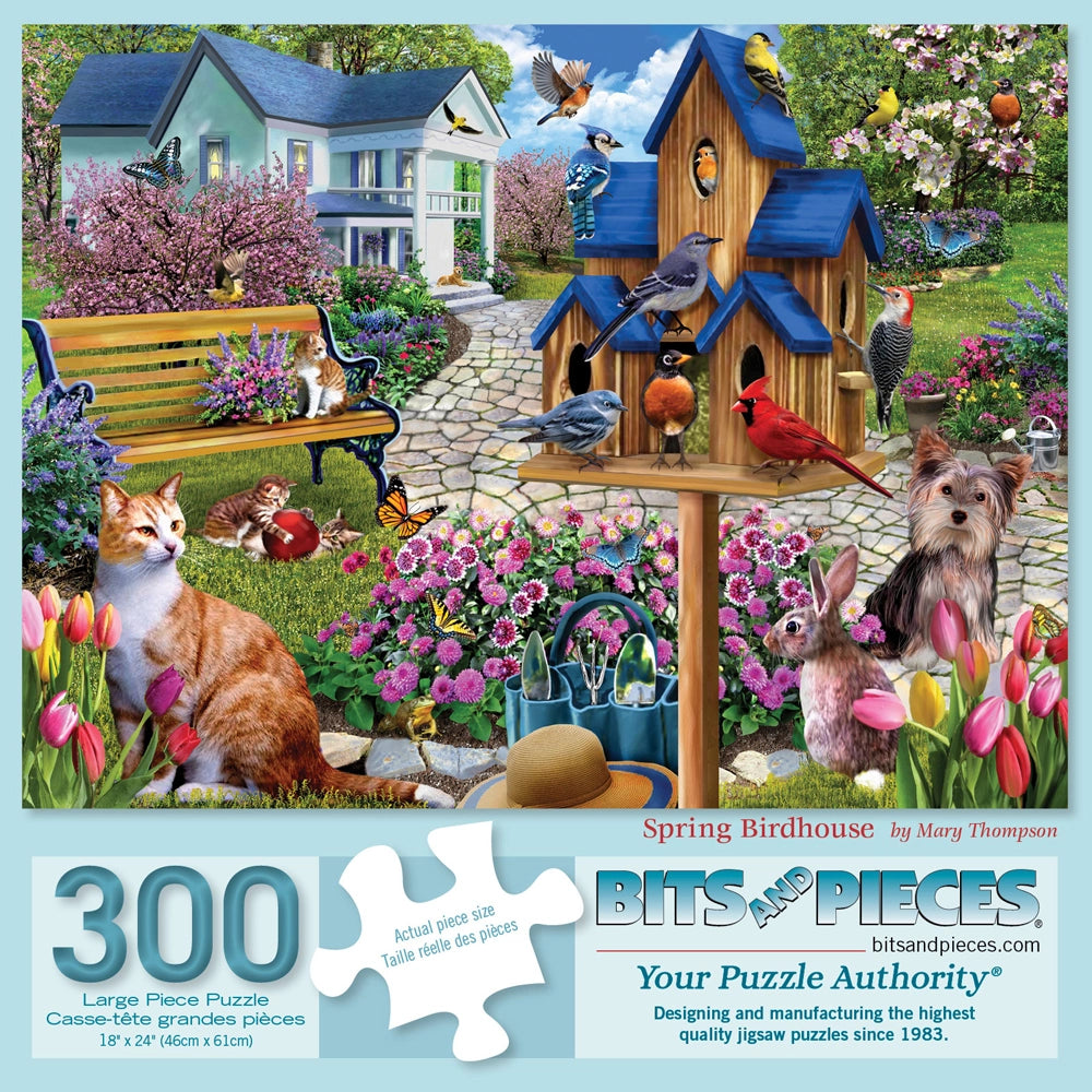 Bursting with color and curiosity, the Spring Birdhouse jigsaw puzzle by Mary Thompson captures the joy of a blooming backyard. Bluebirds gather at a handcrafted birdhouse while tulips sway and kittens peek from the path. With so many tiny springtime details, this puzzle is a cheerful way to celebrate new beginnings.