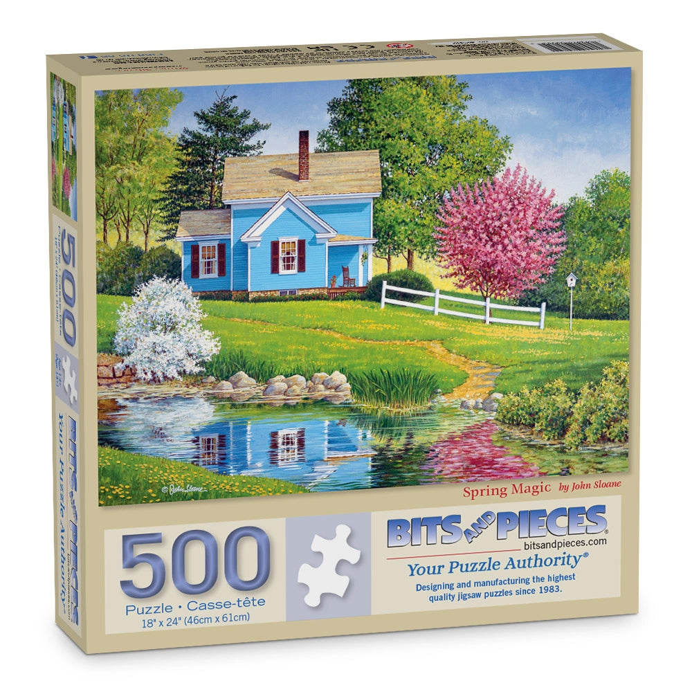 Spring Magic by John Sloane is all about new beginnings. A cozy cottage is surrounded by trees in bloom, tulips bursting from garden beds, and calm water reflecting a perfect sky. Every piece is packed with soft colors and hopeful energy, making this a joyful puzzle from start to finish.