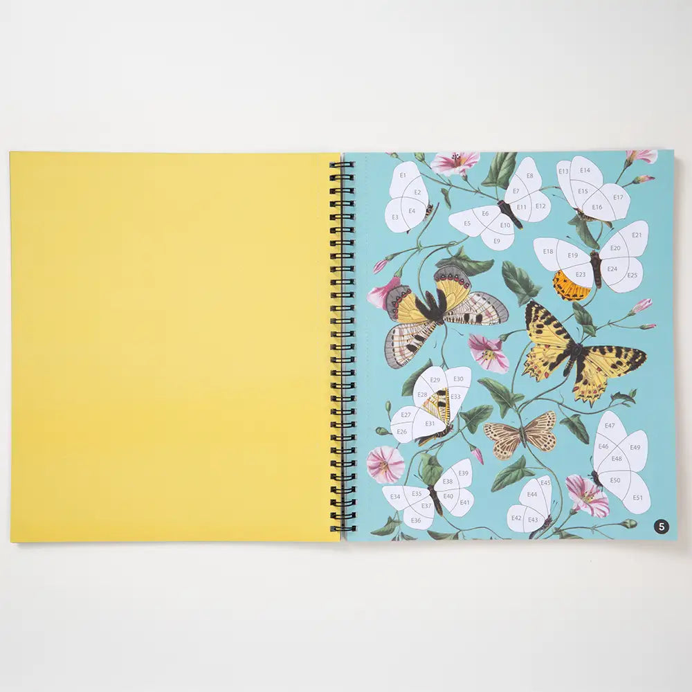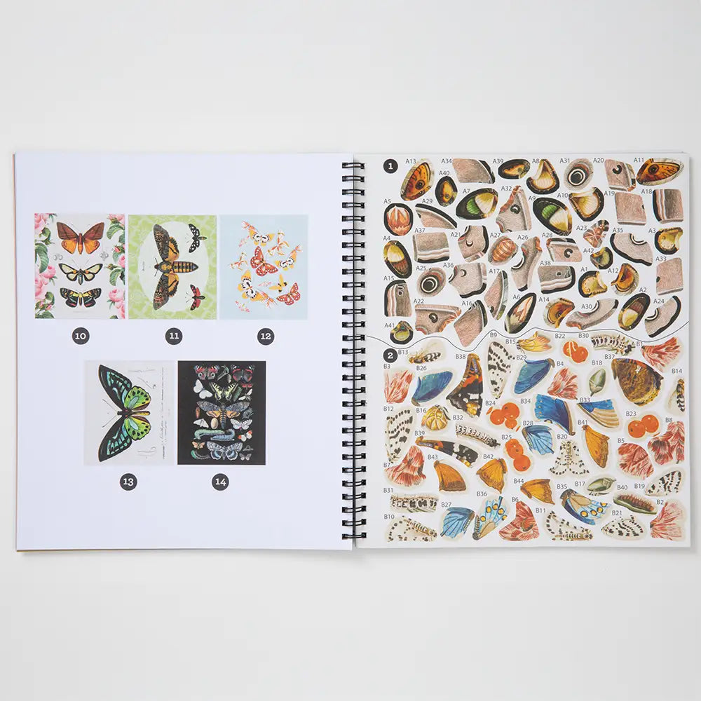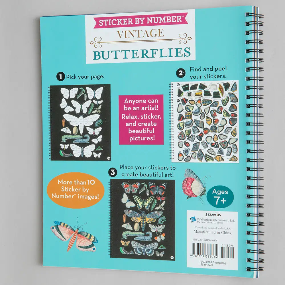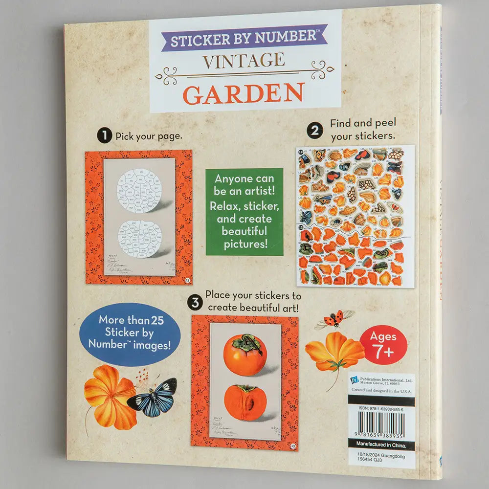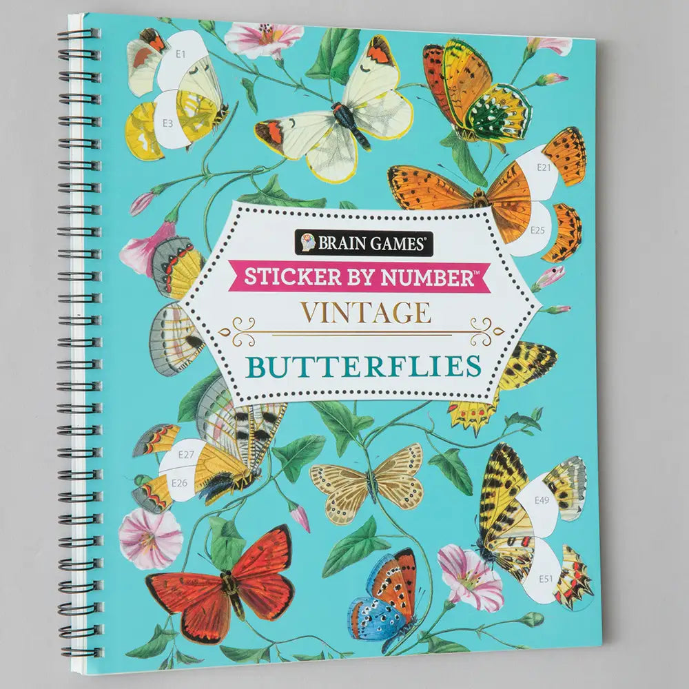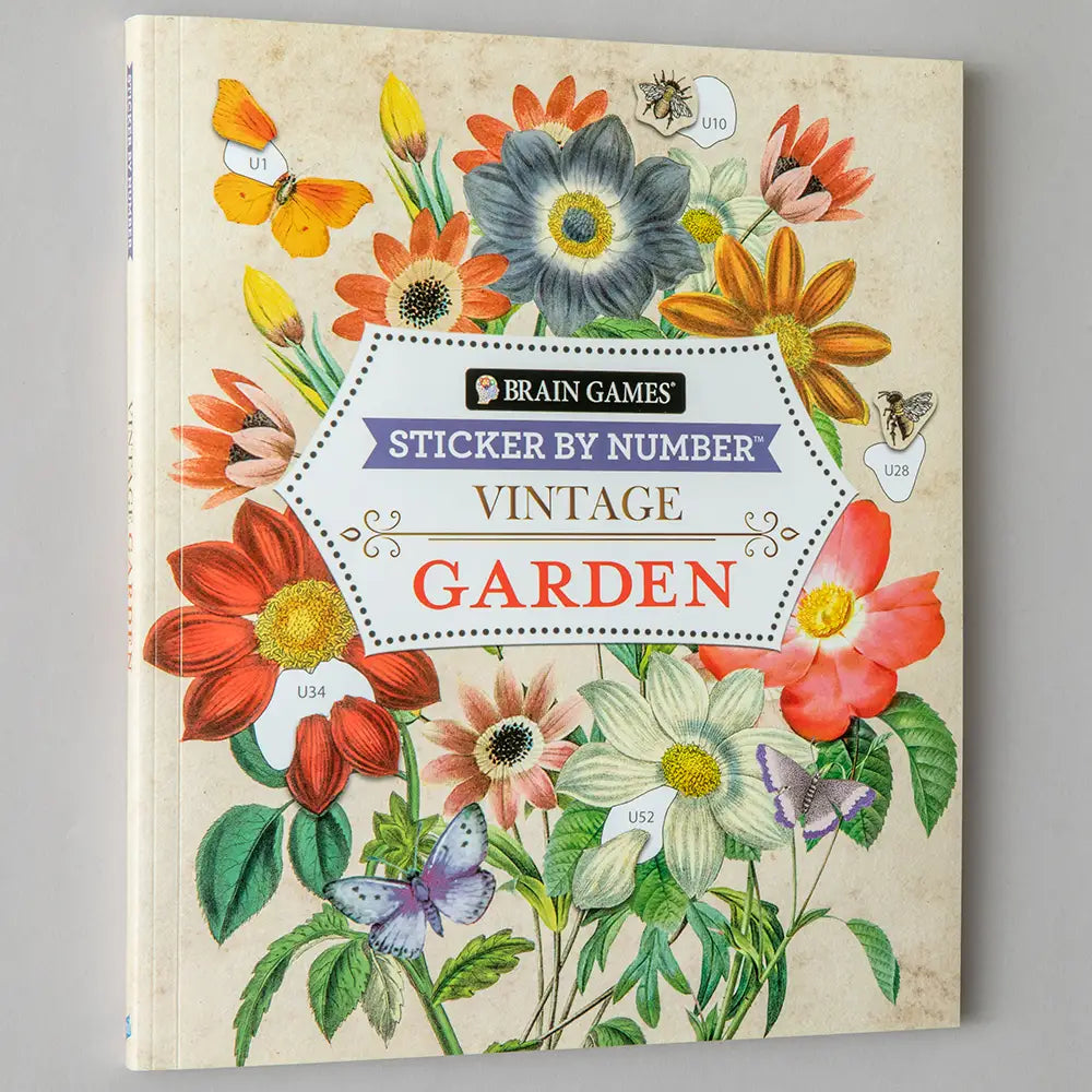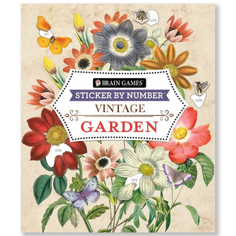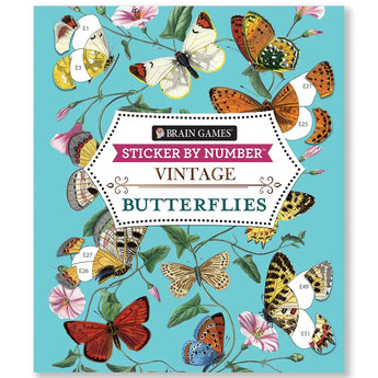 Find the coordinating stickers to complete the artwork by matching the sticker with the same code on the space on the art page. Vintage Garden Features 28 garden images including blue irises, ripe persimmons, clusters of pansies and more. Softcover. Vintage Butterflies feature 28 butterfly and moth images to sticker including the monarch, swallowtail, Atlas moth, and more. Spiral bound. Puzzle designs range in difficulty.