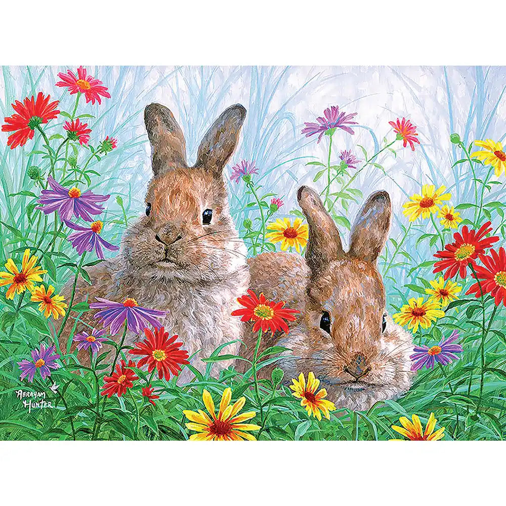 Hop into the beauty of summer with Summertime Bunnies, a charming puzzle by Abraham Hunter. Two adorable rabbits peek out from a colorful meadow, surrounded by wildflowers in full bloom. With delicate brushstrokes and vibrant details, this puzzle captures the warmth and joy of a sunlit countryside. Perfect for animal lovers and nature enthusiasts, it offers a fun and rewarding challenge that brings a touch of sweetness to your puzzling experience.