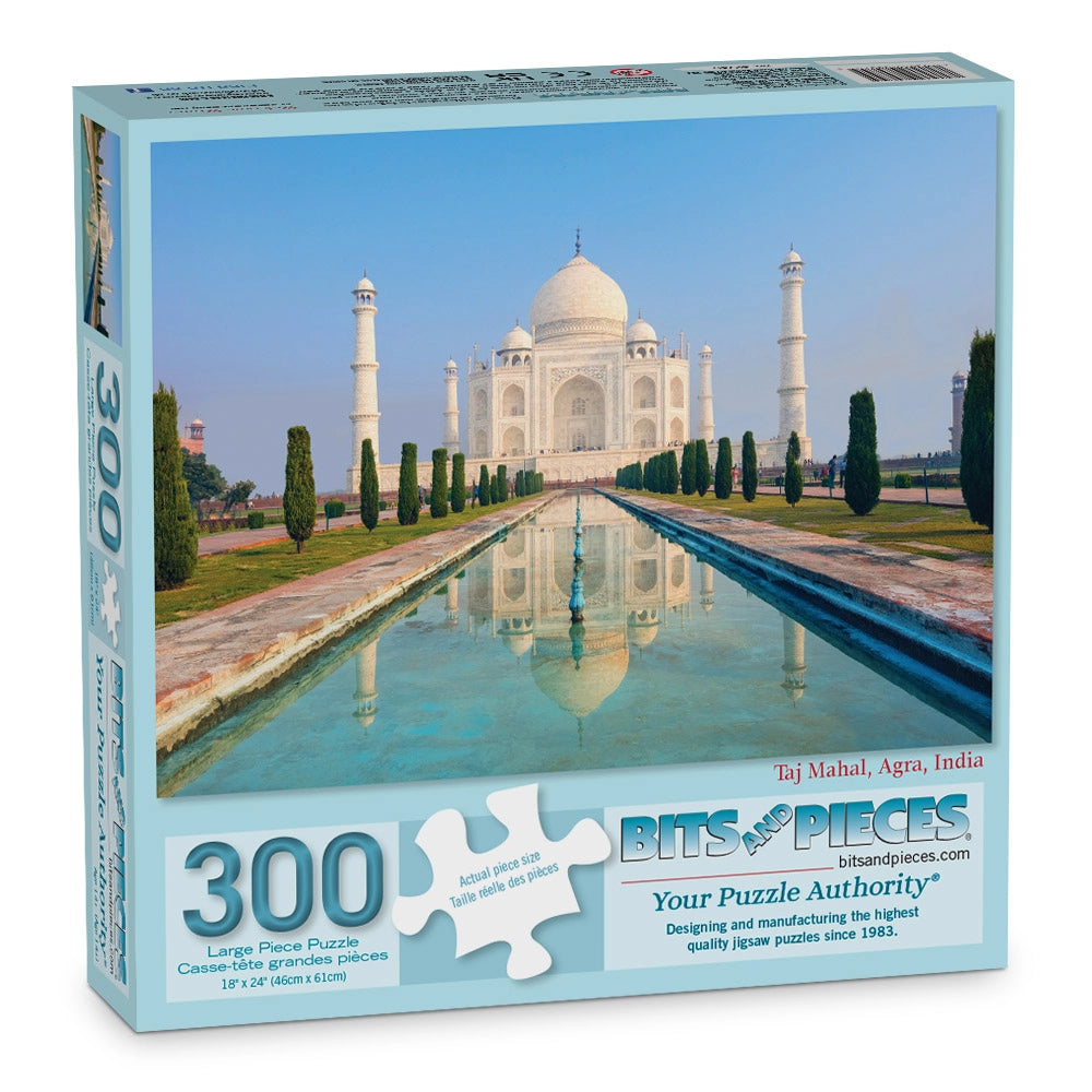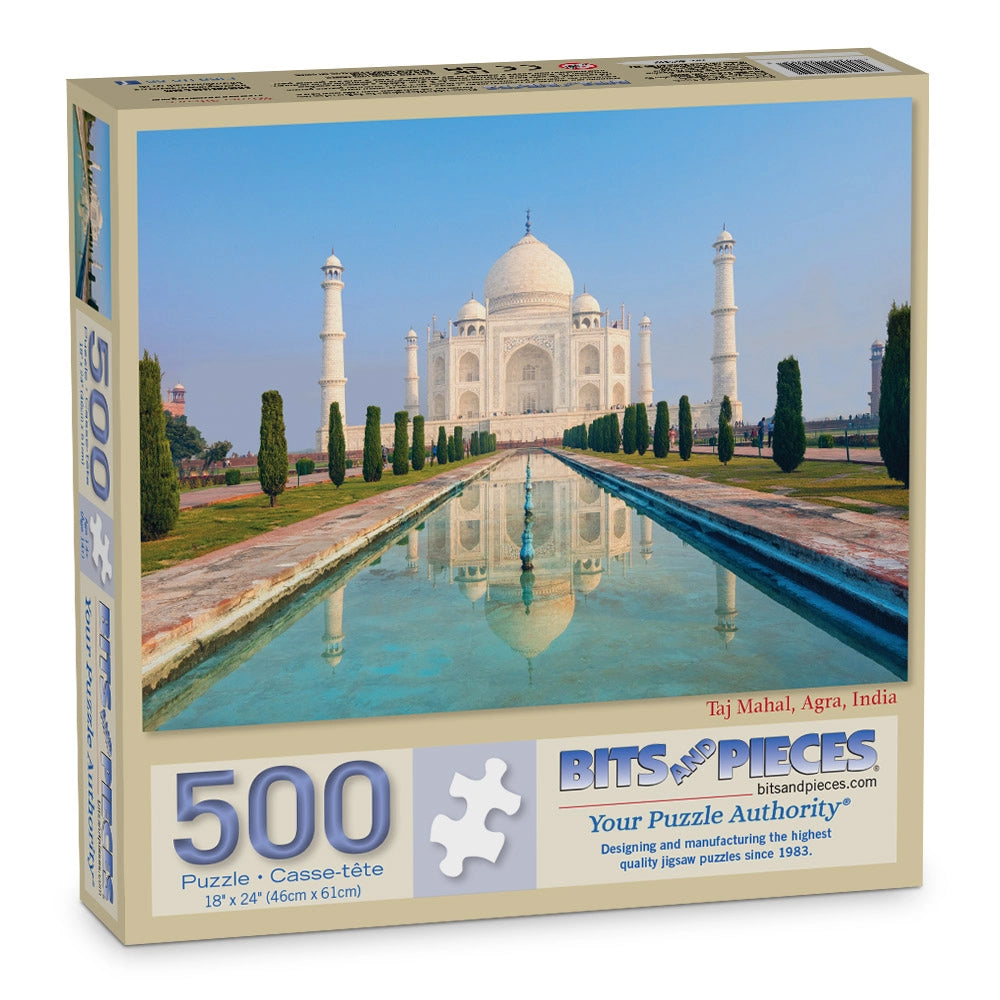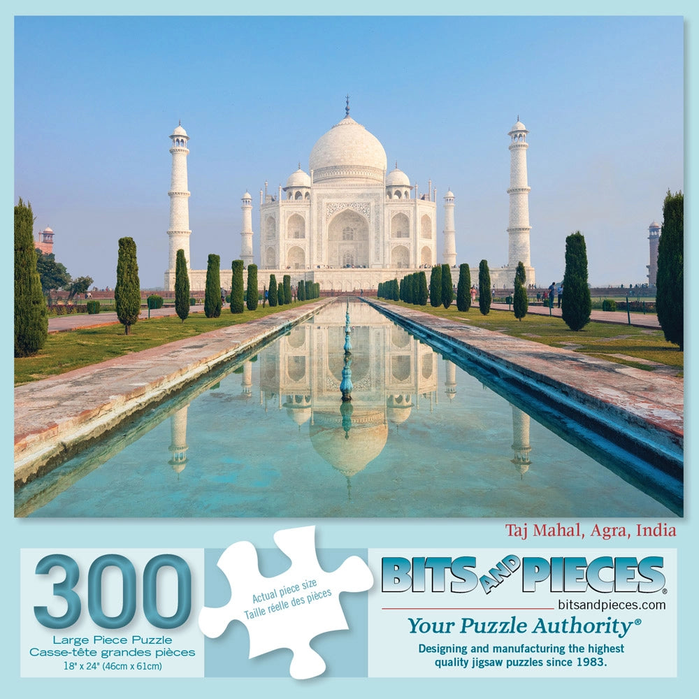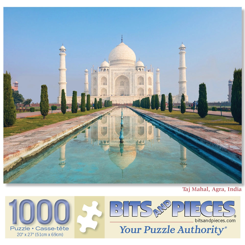 Marvel at a symbol of eternal love with the Taj Mahal, Agra jigsaw puzzle. Reflecting in tranquil waters and framed by lush greenery, this iconic white marble mausoleum stands in peaceful symmetry. A beautiful and meditative puzzle perfect for travel dreamers.