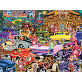Step back in time with this 1,000-piece jigsaw puzzle designed by Neal Taylor. Featuring a vibrant collage of vintage cars, retro drive-in theaters, and classic diner waitresses, this puzzle captures the nostalgic charm of mid-century Americana. Measuring 20" x 27", it’s filled with intricate details and bold colors, making it a fun and engaging challenge for puzzle enthusiasts and lovers of classic cars and 1950s nostalgia.