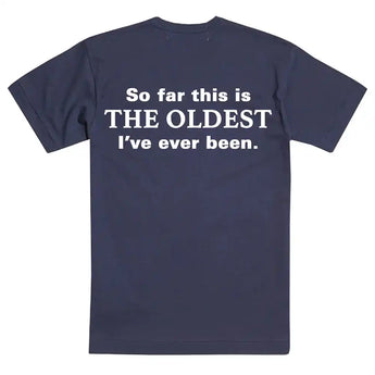 Celebrate the journey (and every hilarious milestone along the way) with the So Far This Is the Oldest I’ve Ever Been T-shirt. Printed in bold white text on a navy blue backdrop, this unisex tee is the perfect mix of wit and wisdom for birthdays, retirements, or any day that calls for a good laugh. Crafted from soft, breathable cotton with a classic crew neckline and short sleeves, it’s as comfortable as it is comical. A great gift for anyone who’s aging like fine wine—with a healthy dose of humor.