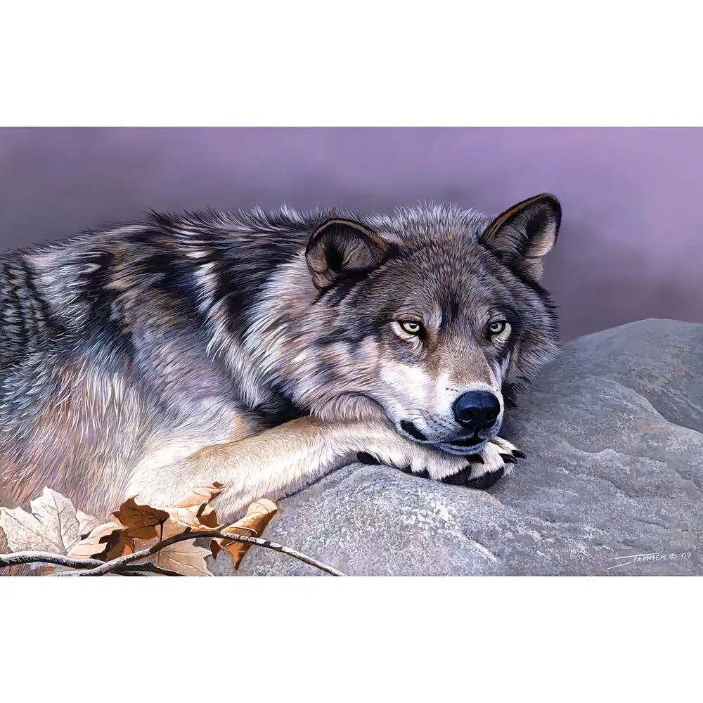 Immerse yourself in the serene beauty of nature with this stunning puzzle designed by Clinter Jammer. Featuring a lifelike portrait of a wolf resting on a rock amidst autumn leaves, this artwork captures the wolf's quiet strength and intense gaze. The rich colors and detailed textures create a captivating scene that animal lovers and art enthusiasts will adore. Perfect for a relaxing pastime or as a thoughtful gift, this puzzle brings the majesty of the wild into your home. Celebrate the art of nature with this breathtaking design.