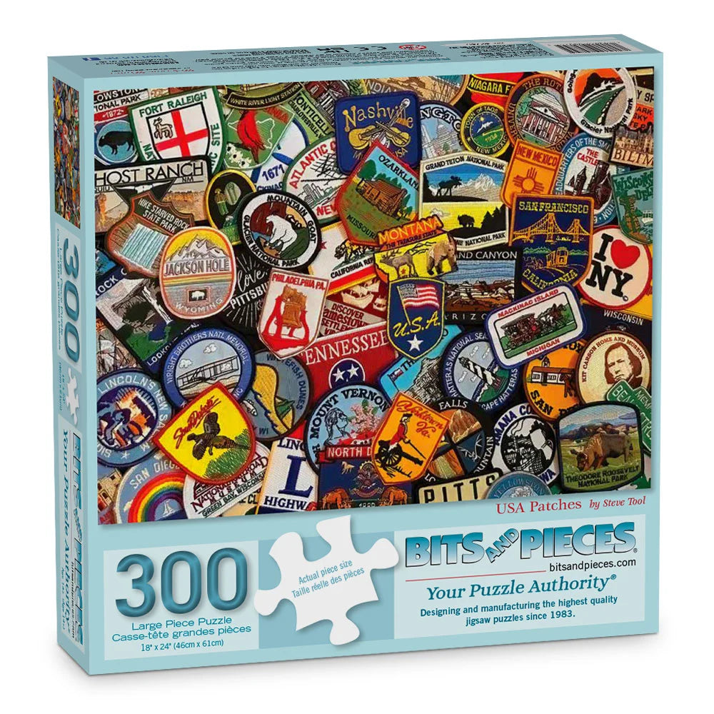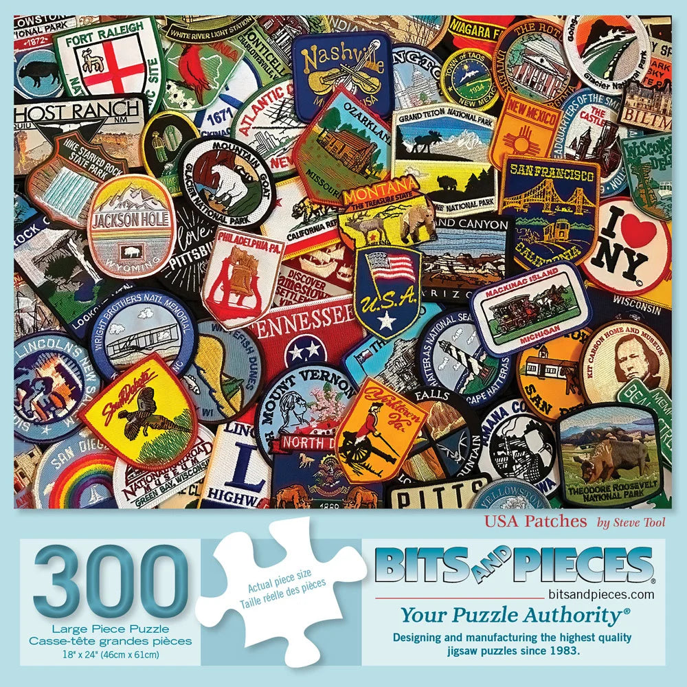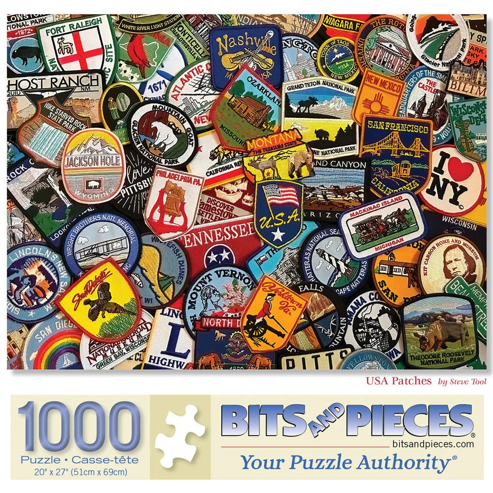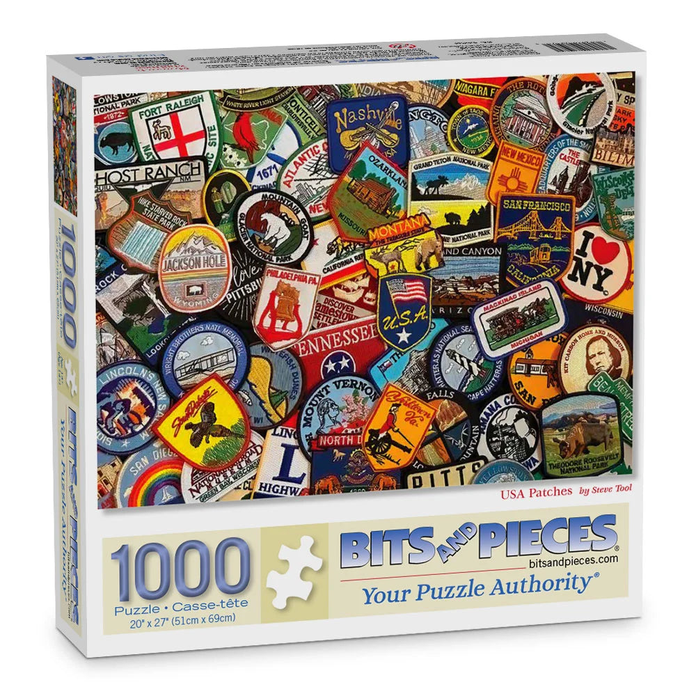 Show your state pride with the USA Patches jigsaw puzzle by Steve Tool, a bold collage of embroidered travel patches from across the country. Each piece is packed with retro style and road-trip nostalgia—perfect for puzzle fans and proud travelers alike.