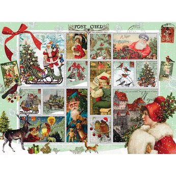 This jigsaw puzzle is designed by Finchley Paper Arts Ltd. Puzzles are renowned for their engaging complexity, offering a satisfying challenge with their smaller, intricate pieces. In this postcard-style Christmas puzzle collage, various heartwarming Christmas scenes and Santa Claus interpretations come together in a festive and joyous celebration of the holiday season. It's a delightful compilation of the spirit of Christmas and the jolly man in red, perfect for spreading holiday cheer. Available in multiple piece counts.