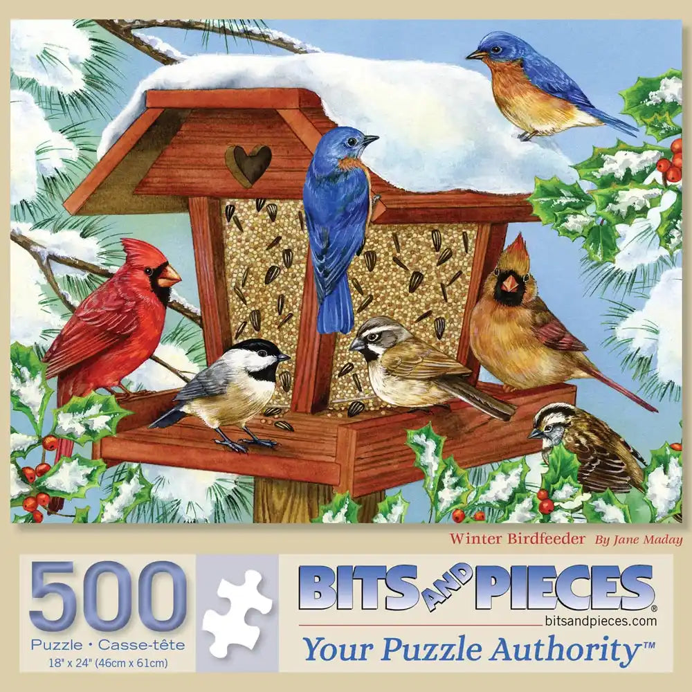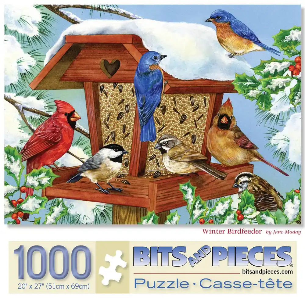 Welcome winter’s feathered friends with the Winter Birdfeeder puzzle by Jane Maday, available in 500 and 1000 pieces. This charming scene captures vibrant cardinals, chickadees, and bluebirds gathering around a snow-covered birdfeeder, bringing warmth and color to the frosty season. Piece together these delightful details and enjoy a quiet moment of nature’s beauty during the winter months.