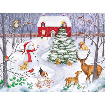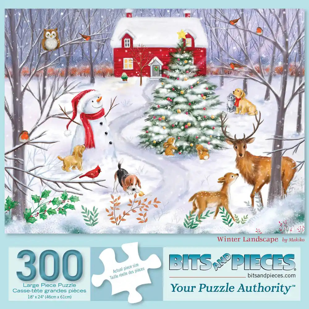 Gather around the warmth of winter’s embrace with Makiko's Winter Landscape puzzle, available in 300 and 500 pieces. This snowy scene brings together woodland friends, playful pups, and a glowing Christmas tree in front of a cozy red house. Each detail adds a sprinkle of holiday magic, making this puzzle a joy to complete as you sip cocoa by the fire.