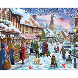 Lace up your boots and wander into a storybook scene with this charming 1000-piece puzzle, where families skate, horses trot, and frosty branches sparkle under the fading winter sun. Steve Crisp captures the magic of a crisp afternoon stroll in a countryside village, full of charm, tradition, and neighborly warmth. A true snow-dusted delight.This 1000 large piece jigsaw puzzle is designed by Steve Crisp and measures 24" x 30".