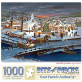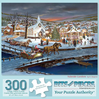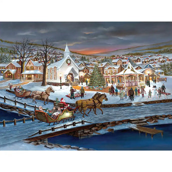 This jigsaw puzzle is designed by H Hargrove. Puzzles are renowned for their engaging complexity, offering a satisfying challenge with their smaller, intricate pieces. Transport yourself to a snow-covered town that beckons you to pack your bags and journey to the North Pole. In the heart of this enchanting scene, carolers harmonize together in a charming gazebo, drawing townspeople together to revel in the festive melodies. Available in multiple piece counts.